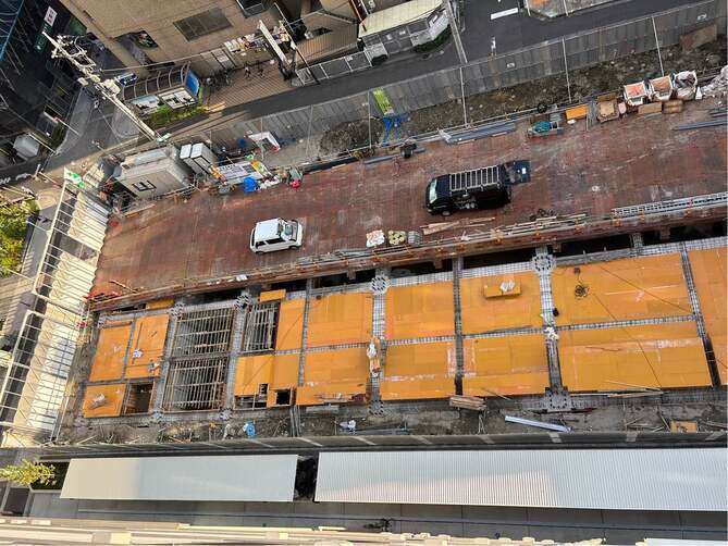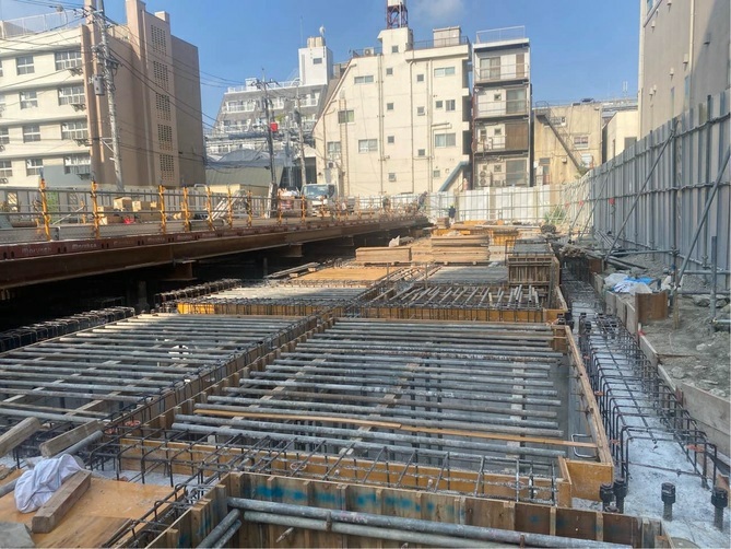 工事進捗全景(定点)2工区 1階スラブ型枠建込み