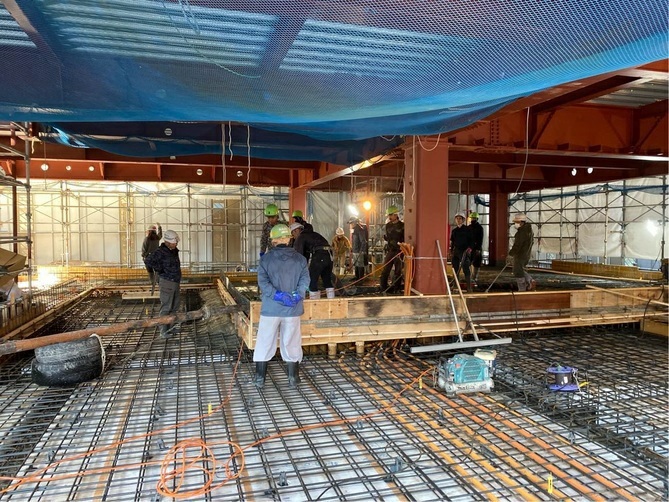 コンクリート工事(1・2工区)1階床コンクリート打設 コンクリート打設(内部)