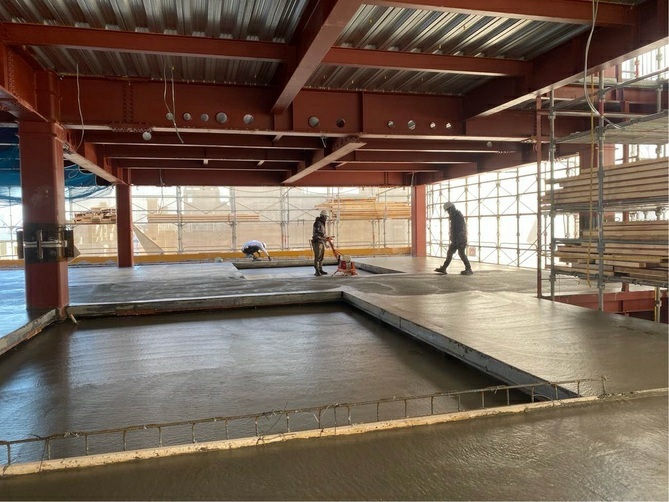 コンクリート工事 5階床コンクリート打設(床金コテ押え状況)