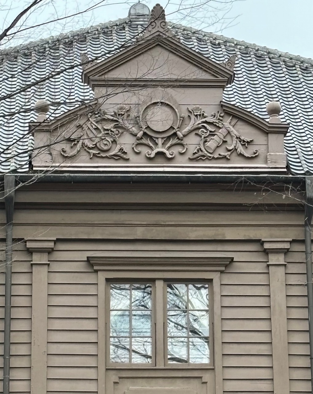 コンクリート建築に瓦屋根を乗せた和洋の帝冠様式。