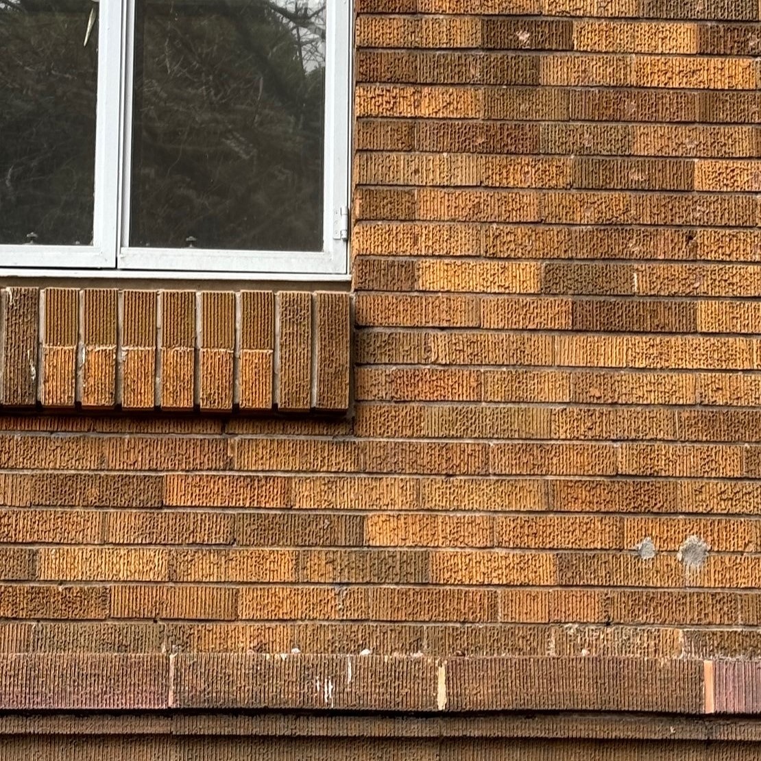完成は昭和50年。レンガ色の外観が特徴でタイルを躯体の