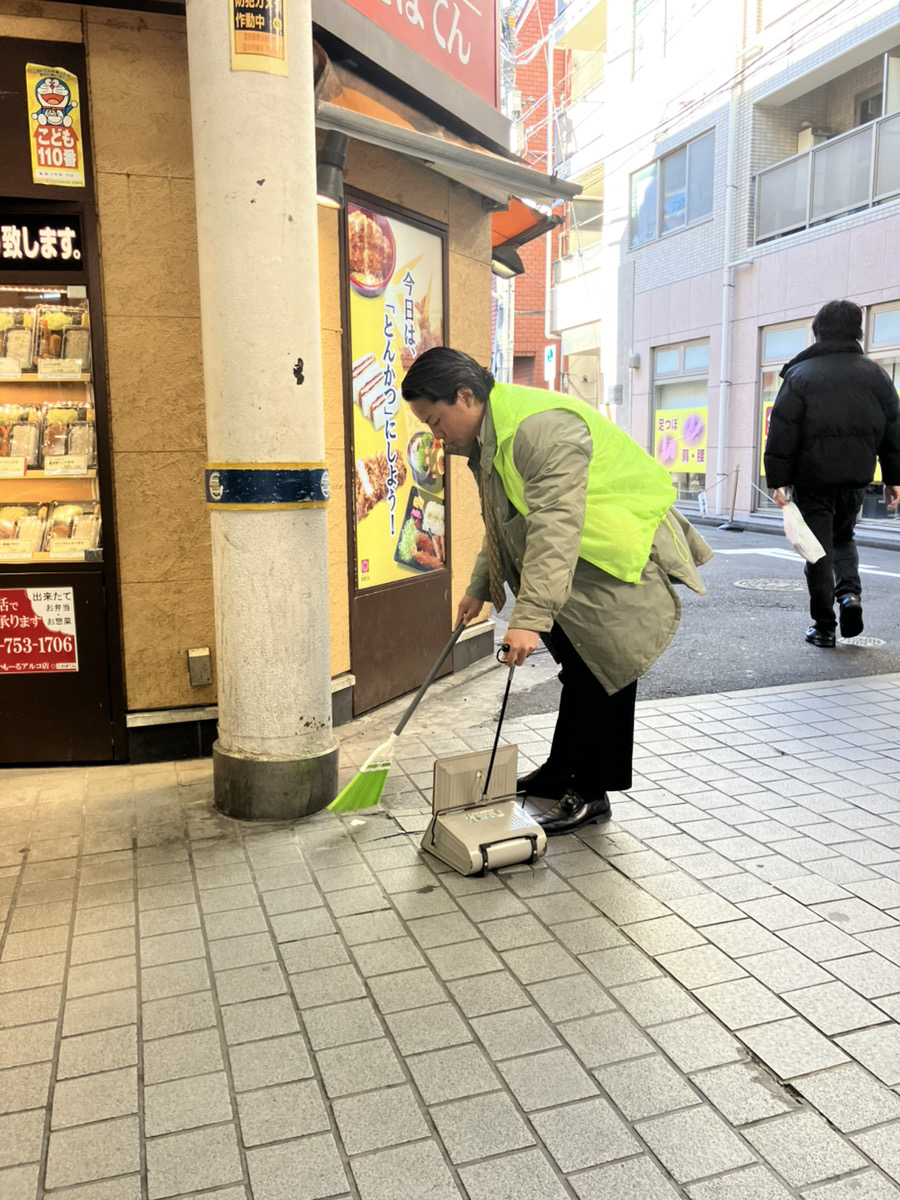 当日は、社員が歩道や植え込み、電柱まわりなどを中心に清掃を行っています。