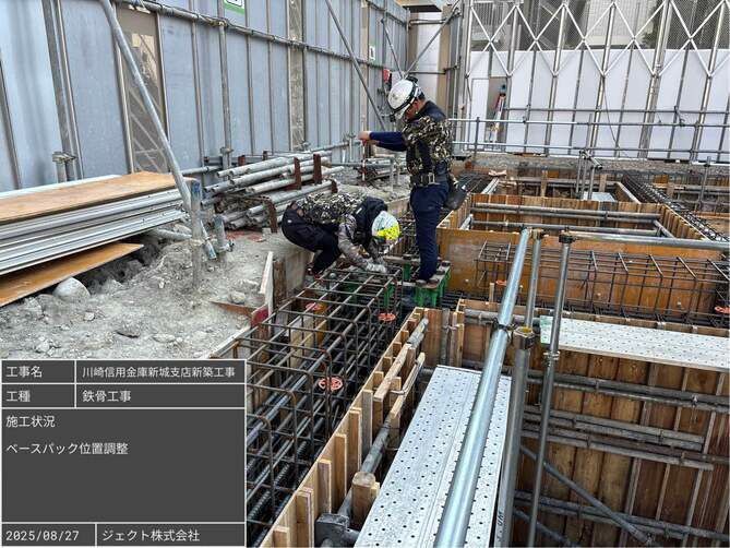 鉄骨工事 ベースパック(アンカーボルト)位置調整