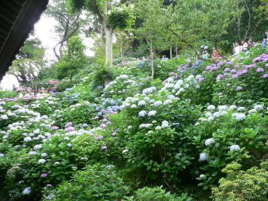 階段を上ると、海とコラボしているあじさいは素晴らしい絵になっていました。