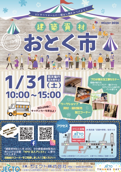 1月31日(土)中原工房ひろばにて「建築資材おとく市2026」を開催しました。