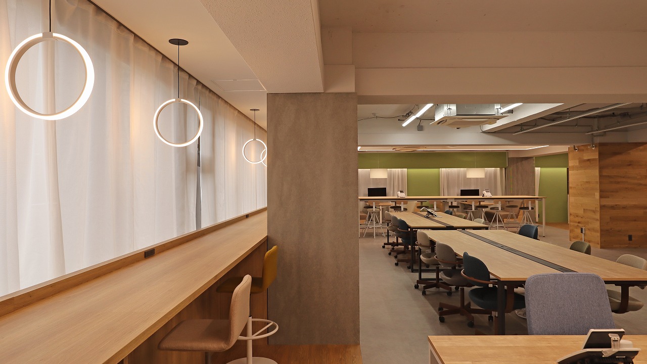 時間帯によって変化する照明を採用し、集中しやすい空間を創出しています。