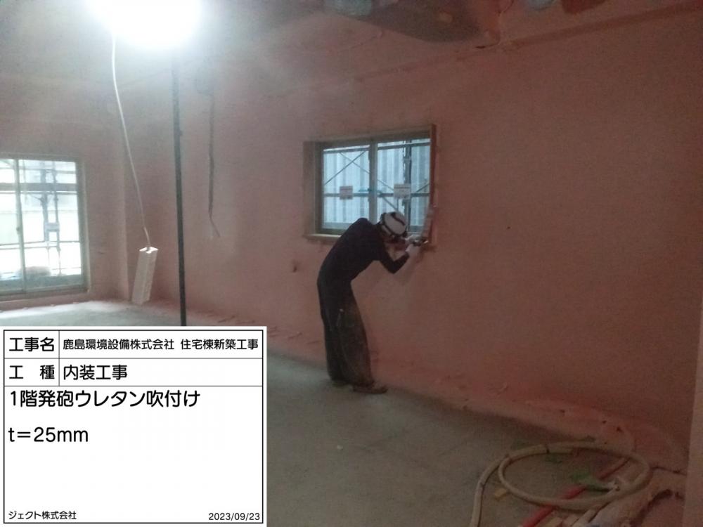内装工事 外壁廻りウレタン断熱吹付(1階)