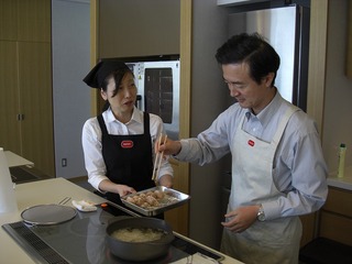 チャーハンの料理では、手さばきも軽く?(写真下)