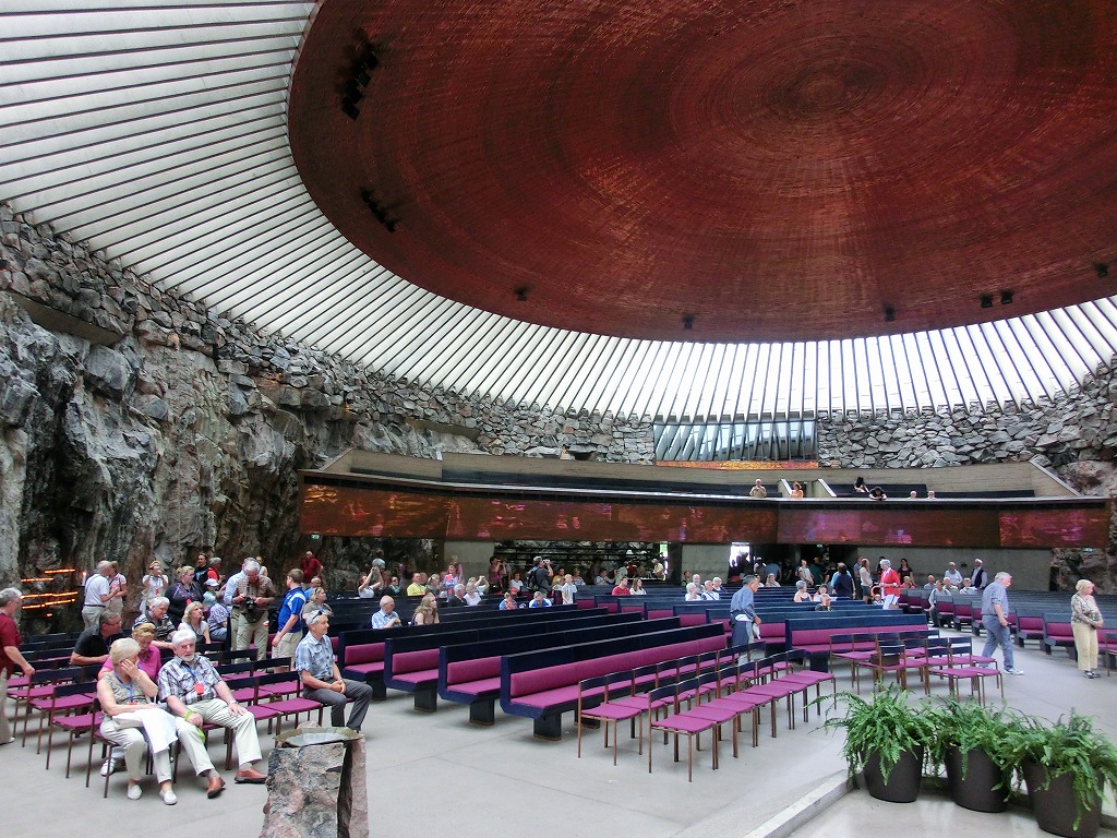 岩盤をくり抜いてできたテンベリアウキオ教会を見学。