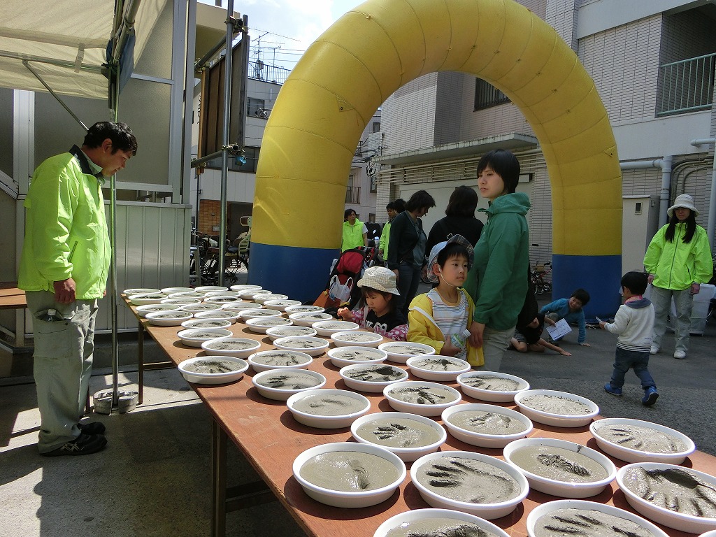 ALSOKの協力で子供たちに水の消火器にも触れて