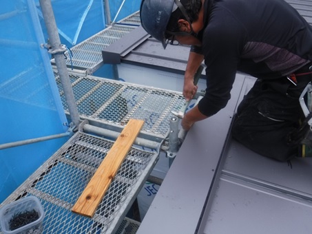 屋根工事 ガルバリウム鋼板立ハゼ葺(棟包み部分施工)