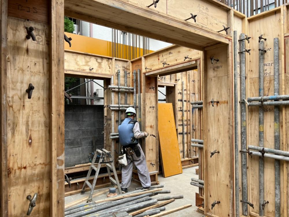 型枠工事 1階立上り型枠建込み(1階壁)