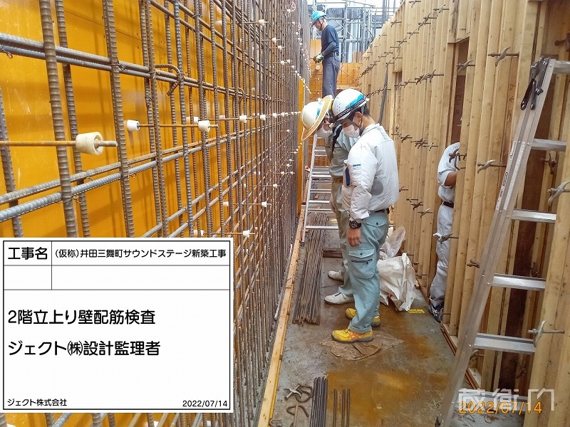 2階立上り壁配筋検査(ジェクト㈱設計監理者)